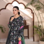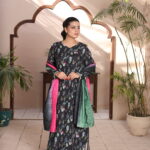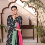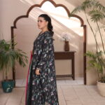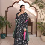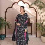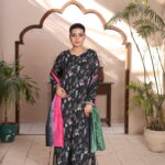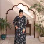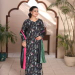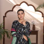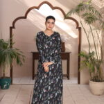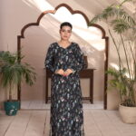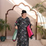 Pure Korean raw silk Kaftan with lace embellishments on slits and sleeves paired with korean raw silk pants and V-neck